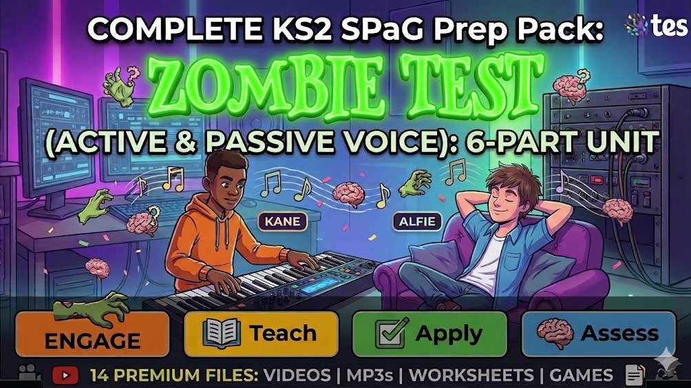 Struggling to captivate your students with SPaG requirements? Our premium course offers a fun and effective way to teach active and passive voice. Designed to engage Years 5 and 6 students, our resources are neuro-inclusive and ensure high energy and maximum memory retention. Join us to bring grammar to life with zombies! Enroll now and transform your teaching experience.